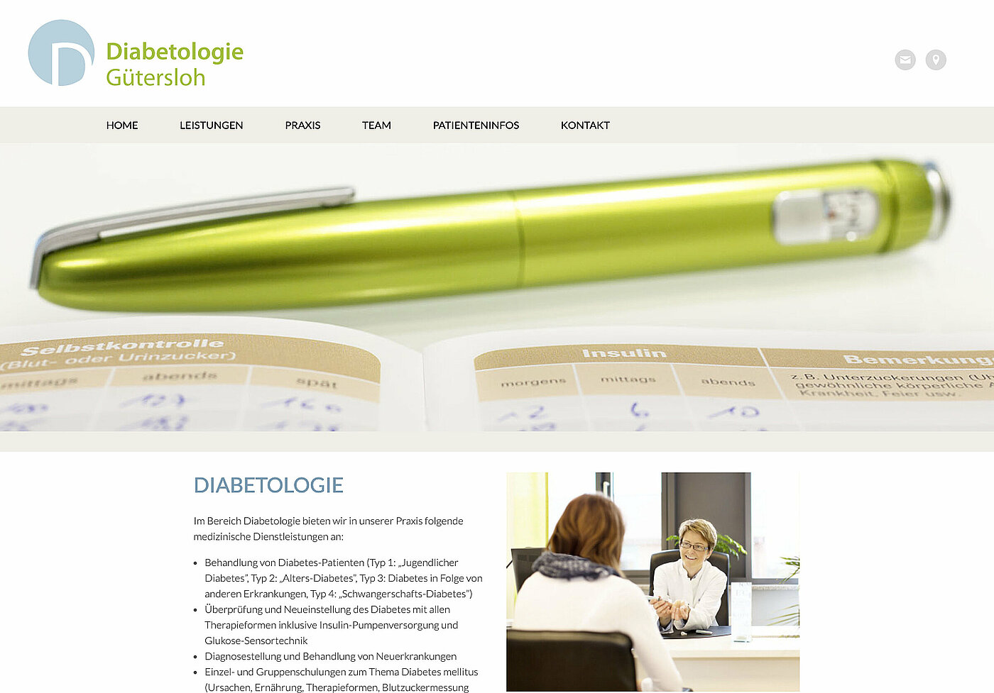 Seit Jahren besteht eine tolle Kundenbeziehung zwischen salzmann medien und der Diabetologischen Schwerpunktpraxis von Dr. Susanne Adler und Olaf Milbradt – angesiedelt im Elisabeth-Carrée Gütersloh. Nun haben wir die Website technisch und optisch auf Vordermann gebracht. Der Internetauftritt des Ärzteteams zeigt beispielhaft, was salzmann medien an „Full Service“ leisten kann: Logo-Design, Webauftritt, Fotografie und vieles mehr durften wir für Dr. Susanne Adler und Olaf Milbradt gestalten. Dafür danken wir herzlich!
